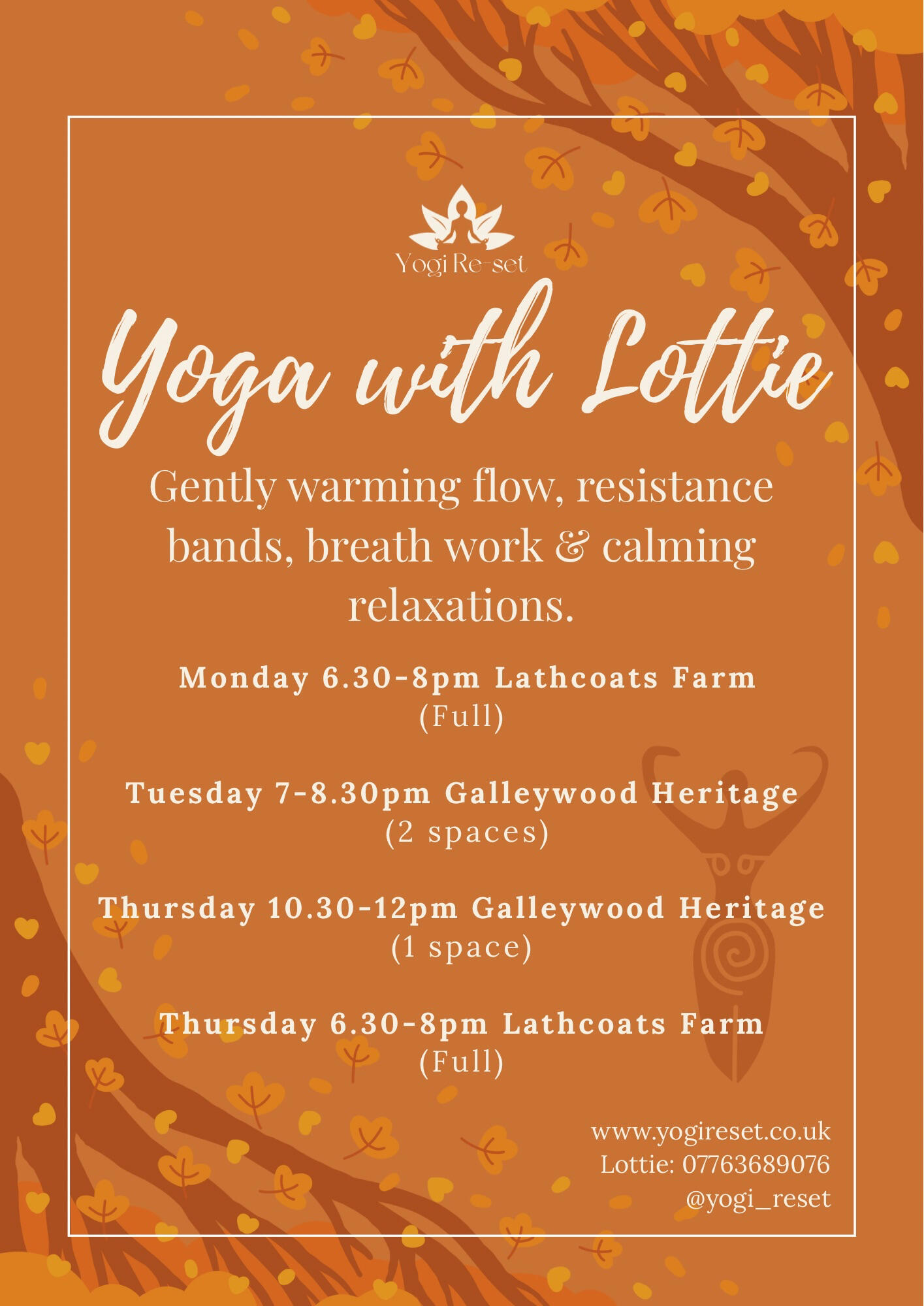 “Lottie is an incredible yoga instructor. I have been attending her classes for a year now and am still amazed by her classes!! She caters to all abilities (I was a complete newbie) and makes it so so accessible. I’ve seen improvements in my physical and mental health and my wellbeing! Not only that but Lottie is such a genuine and kind soul, she has a real passion that you can see in every session and cares about us all! She’s created such a special environment where we feel safe and have made real friendships! She offers amazing experiences (workshops, forest bathing, sound baths and so much more!). I cannot recommend her and her yoga classes enough!! Thank you so much Lottie xxx” Evie“Lottie is a wonderful yoga teacher, guiding us through gentle movement and connection to the breath. Last week we had a beautiful time forest bathing - a mindful walk through the forest, guided meditation under an oak tree and a gentle yoga flow in the meadow. It was just what I needed to feel grounded and connect back with the earth. Lottie is such a warming presence and I always look forward to connecting with her at classes. She makes yoga so accessible to everyone, and I’d recommend her classes and events to anyone looking to de-stress and feel more grounded.” Elise“Lottie is a very talented yoga instructor and shares lots of knowledge to help our mind body and spirit. The classes are very relaxed and welcoming and Lottie covers many aspects of yoga. My flexibility has really improved. The classes are suitable for a variety of ages. I thoroughly recommend Yoga with Lottie.” Lorraine“I have been attending Lottie's classes since May 2023, and I'm so glad I joined. Not only has my physical strength improved, and aches and pains lessened, but I have also felt a definite positive effect on my wellbeing. The classes are different every time, and tailored to the seasons too which is really lovely. Yoga in the orchards in the summer is a particularly special experience. The class attendees are a lovely, friendly and welcoming group of people, and Lottie is a truly wonderful teacher who puts so much thought, planning and care into her sessions. You can be a complete beginner to yoga or very experienced, either way this class is a joy to be a part of!” Dawn“I have been coming to Lottie's classes for over 2 years now and I would never go to another yoga teacher. Lottie's practice is a blend of yoga poses/flows and spirituality. I like that Lottie tells us where we should be feeling the stretch, which helps you to know whether you are doing the pose in the right way. This is not your average gym yoga... this is the art of yoga, taught with love and passion, which is nourishing for both your body and your soul.” Georgie“Lovely summer evenings in the orchard or in the cosy cabin, Lottie teaches a yoga class to soothe your mind and body. She is a warm and caring person, very welcoming to all regardless of experience and offers a wealth of knowledge. Thoroughly recommend!” Sue“Lottie is so passionate about what she does, every class is just wonderful.” Deborah“Amazing yoga teacher and amazing yoga classes.” Sara